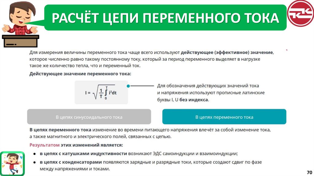 РАСЧЁТ ЦЕПИ ПЕРЕМЕННОГО ТОКА70