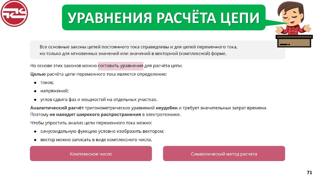 УРАВНЕНИЯ РАСЧЁТА ЦЕПИ (слайд 71)