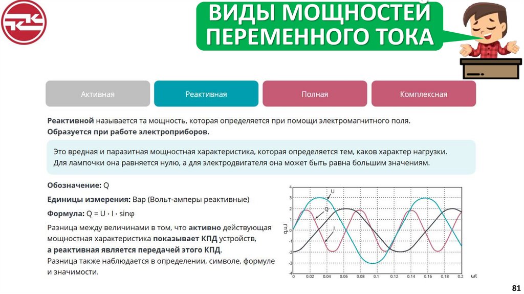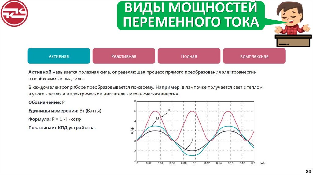 ВИДЫ МОЩНОСТЕЙ ПЕРЕМЕННОГО ТОКА (слайд 80)