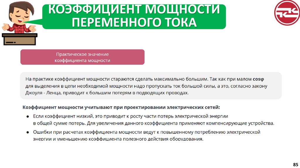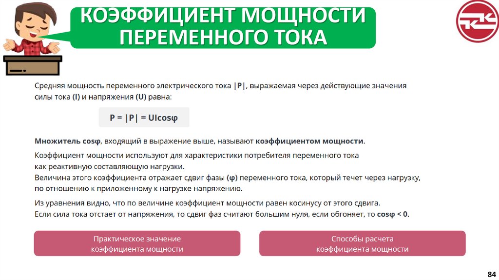 КОЭФФИЦИЕНТ МОЩНОСТИ ПЕРЕМЕННОГО ТОКА (слайд 84)