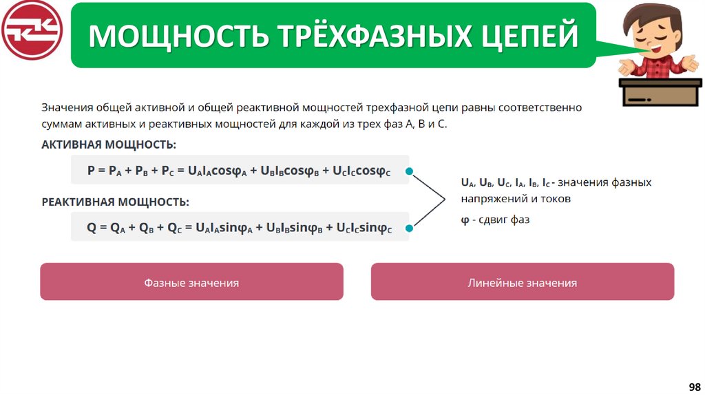 МОЩНОСТЬ ТРЁХФАЗНЫХ ЦЕПЕЙ98