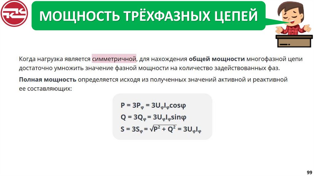 МОЩНОСТЬ ТРЁХФАЗНЫХ ЦЕПЕЙ99