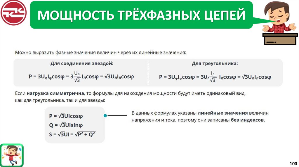 МОЩНОСТЬ ТРЁХФАЗНЫХ ЦЕПЕЙ100