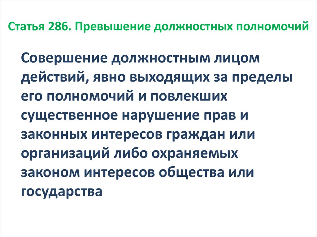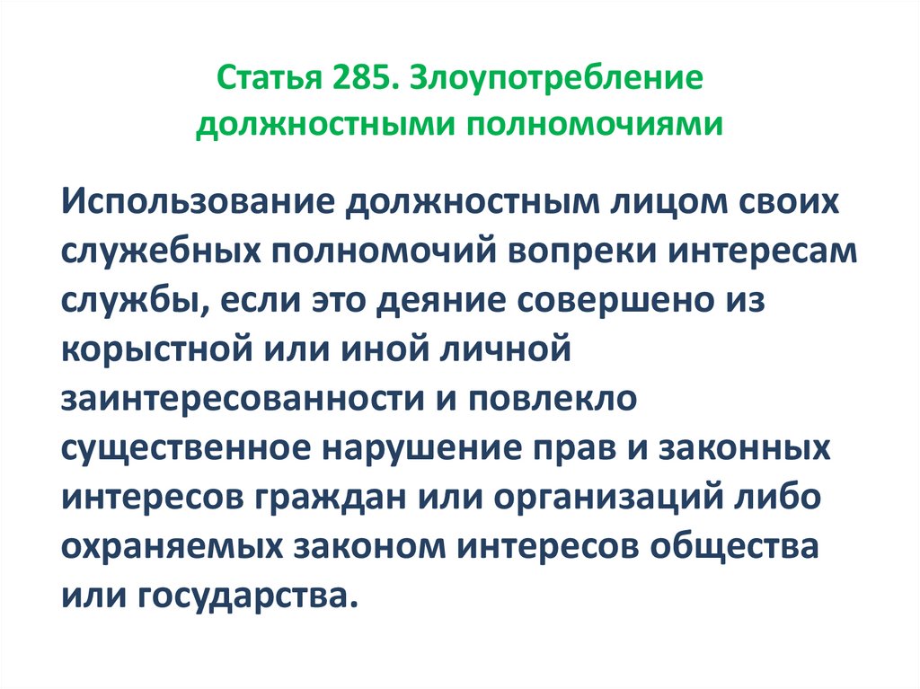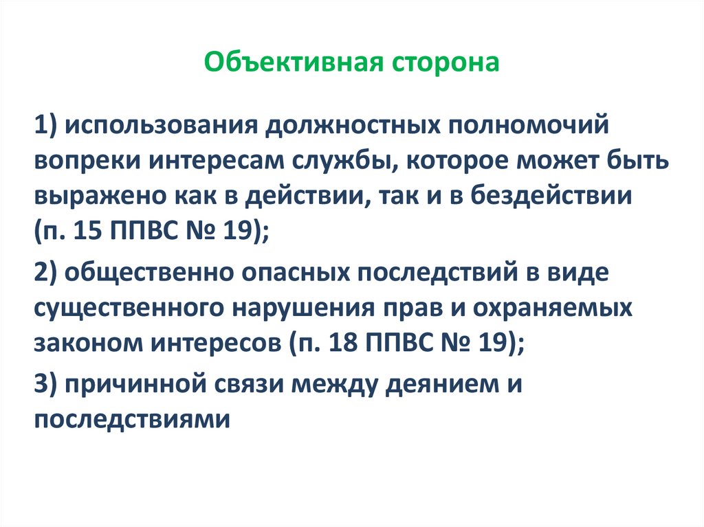 объективной стороны злоупотребления должностными полномочиями // Уголовный закон