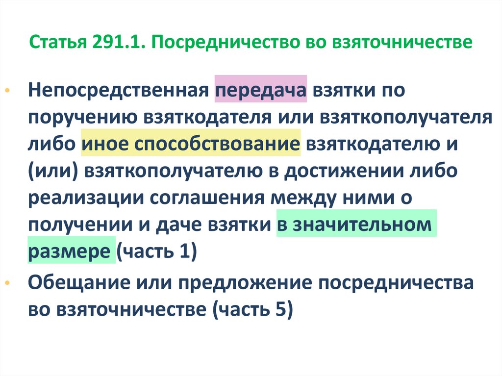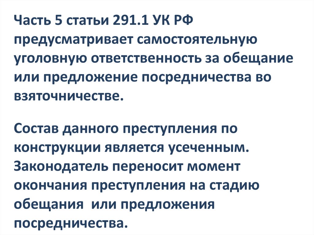 Часть 5 статьи 291.1 УК РФпредусматривает самостоятельную