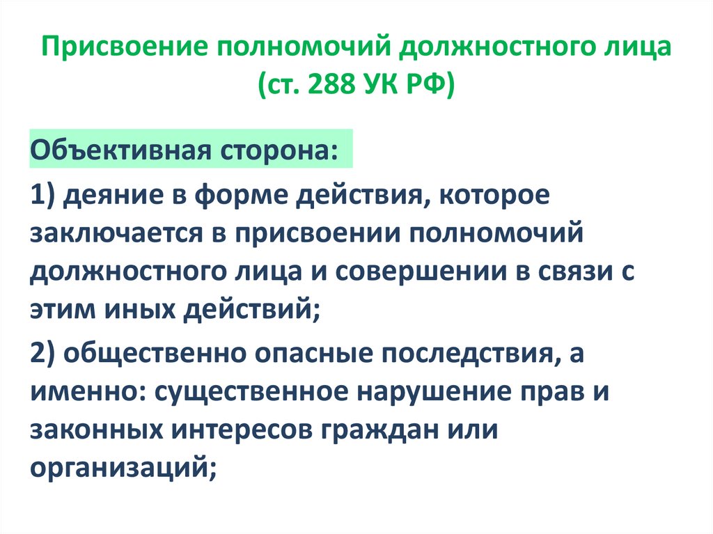Присвоение полномочий должностного лица(ст. 288 УК РФ)