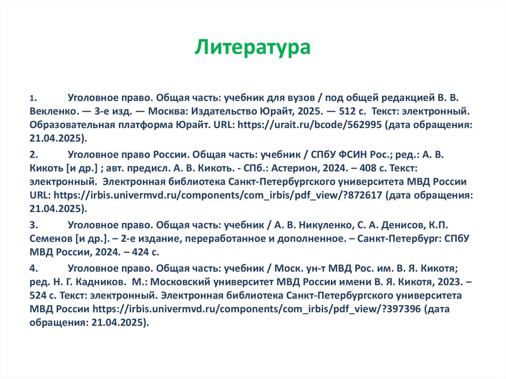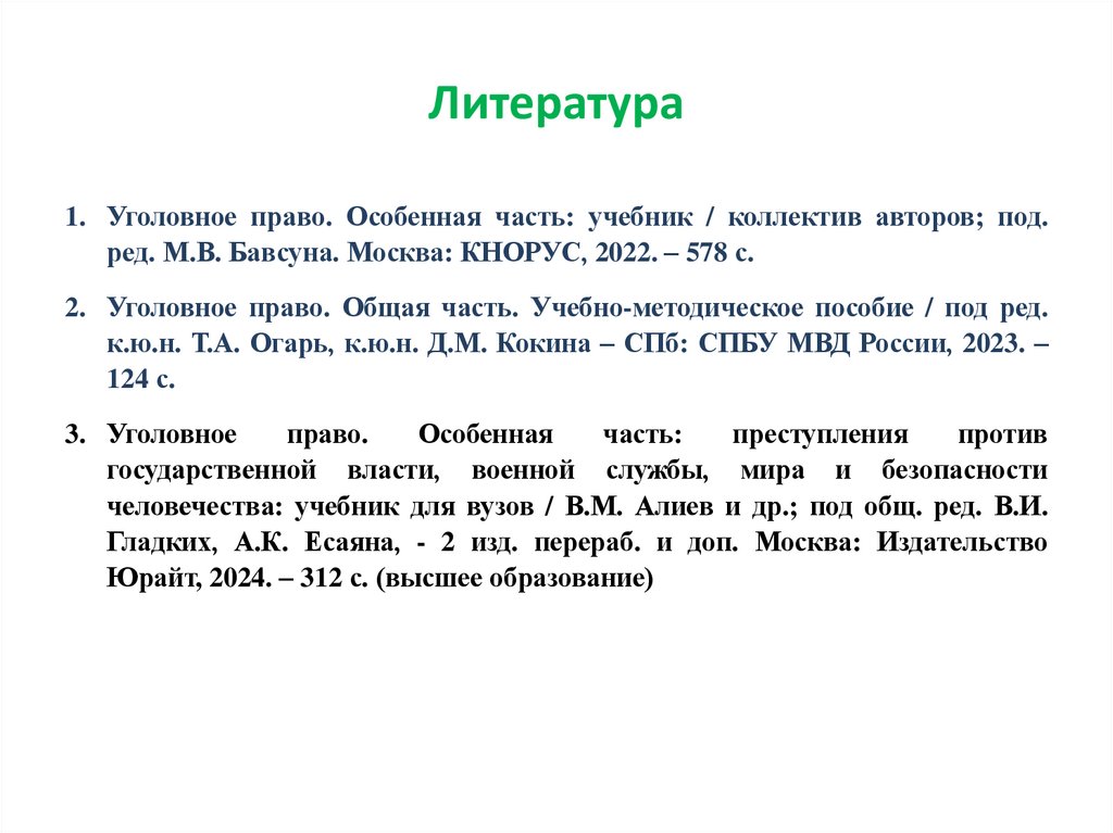Литература1. Уголовное право. Особенная часть: учебник / коллектив авторов; под.