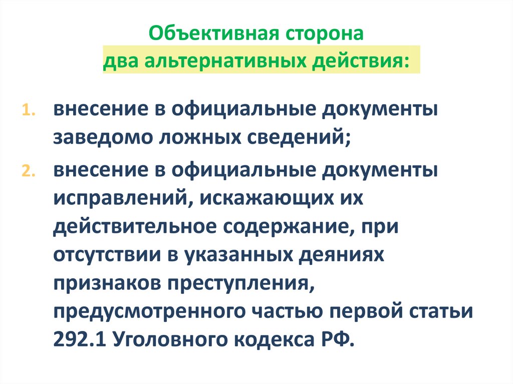 Служебный подлог (ст. 292 УК РФ)Предмет преступления - официальные
