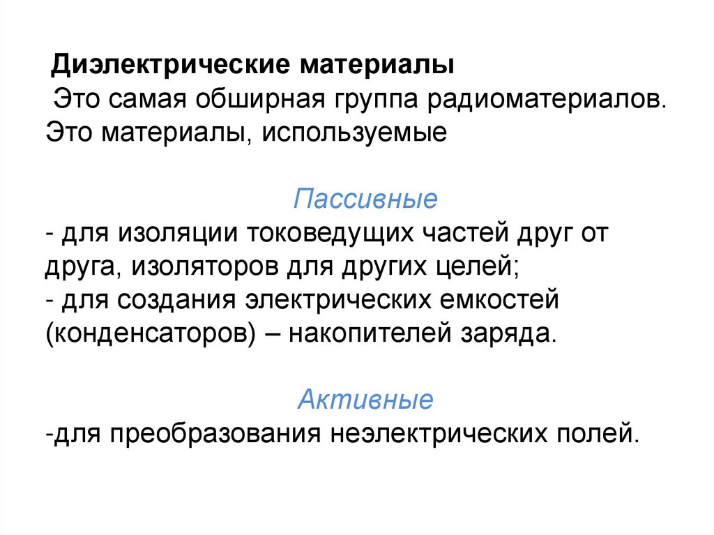 Диэлектрические материалыЭто самая обширная группа радиоматериалов.