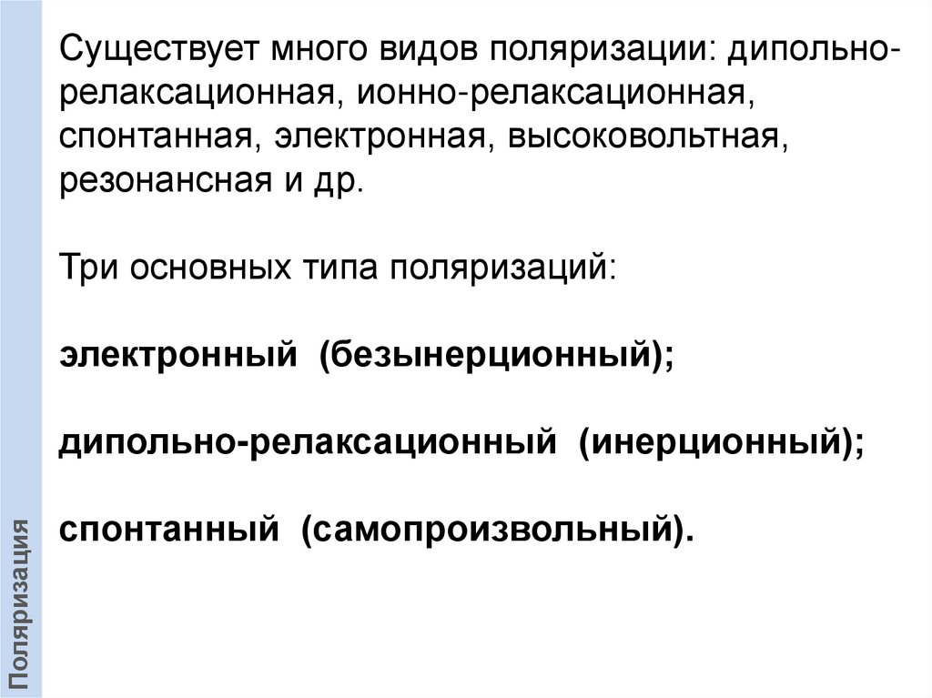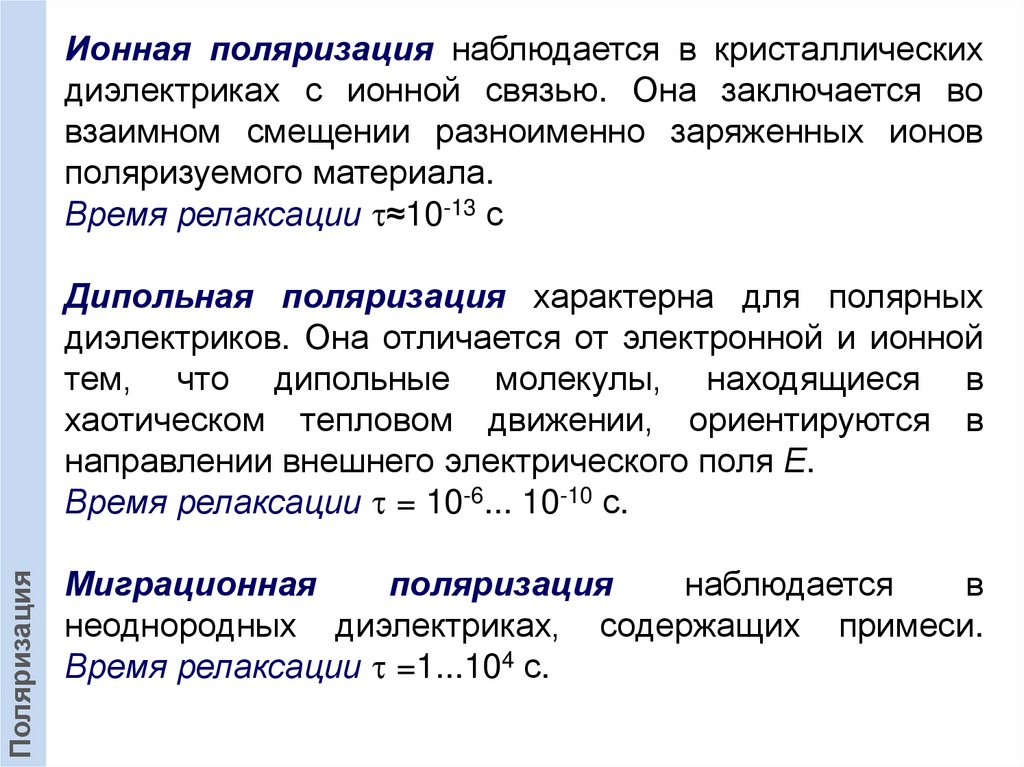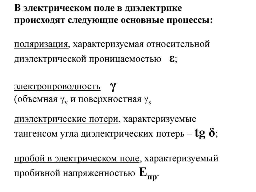 В электрическом поле в диэлектрикепроисходят следующие основные процессы: