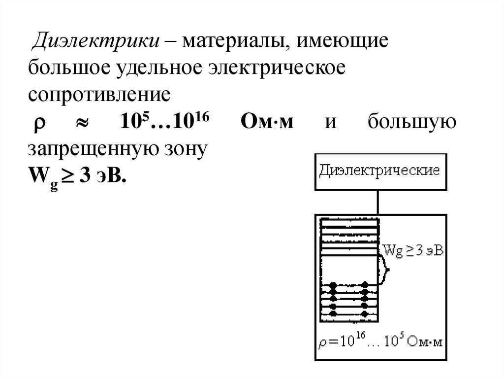 Диэлектрики – материалы, имеющиебольшое удельное электрическое