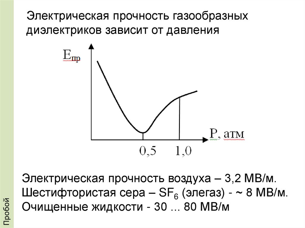 Шестифтористая сера – SF6 (элегаз) - ~ 8 МВ/м.