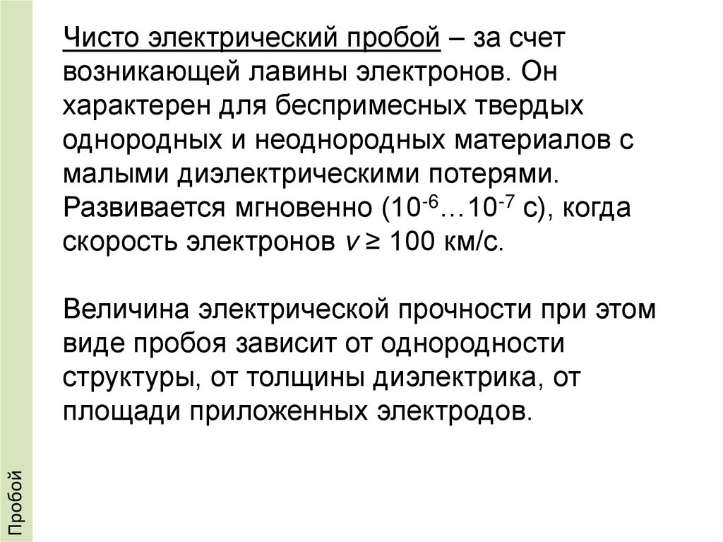 Чисто электрический пробой – за счетвозникающей лавины электронов. Он
