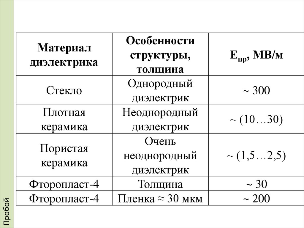 Электрическая прочность воздуха – 3,2 МВ/м.