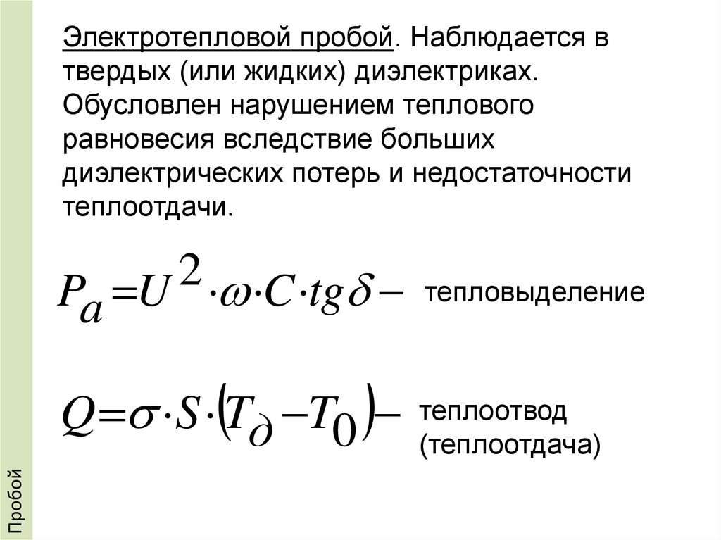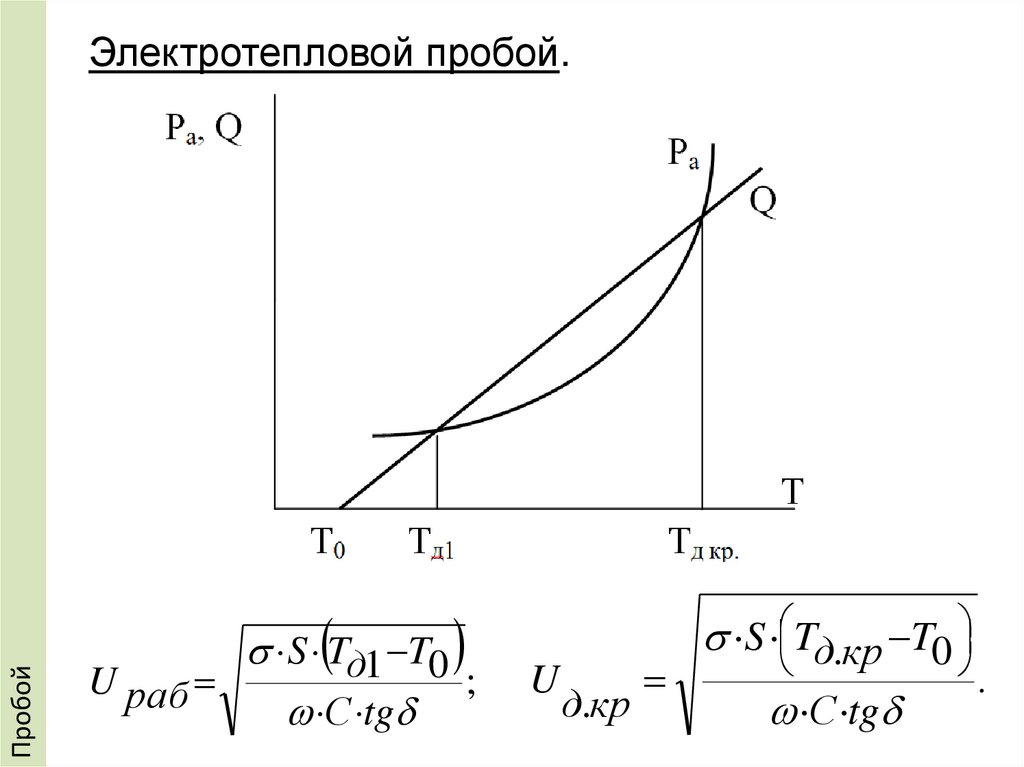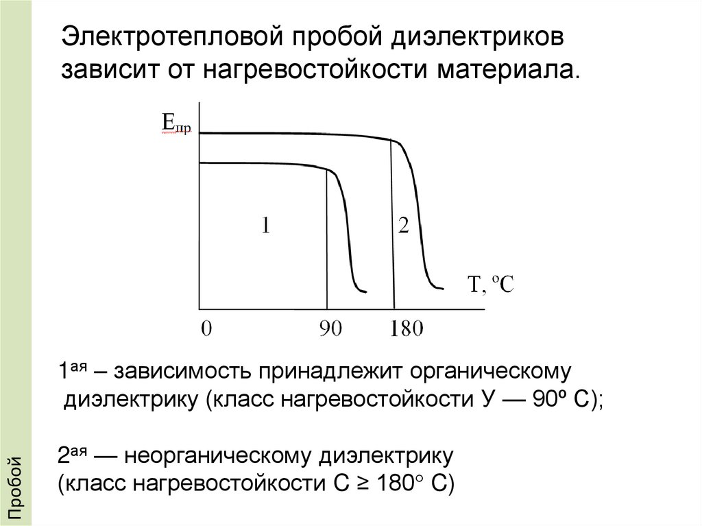 Электротепловой пробой диэлектриковзависит от нагревостойкости материала.