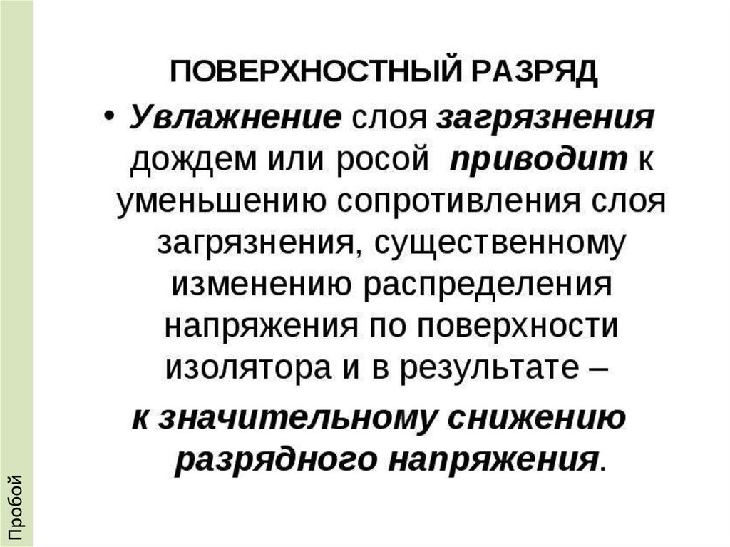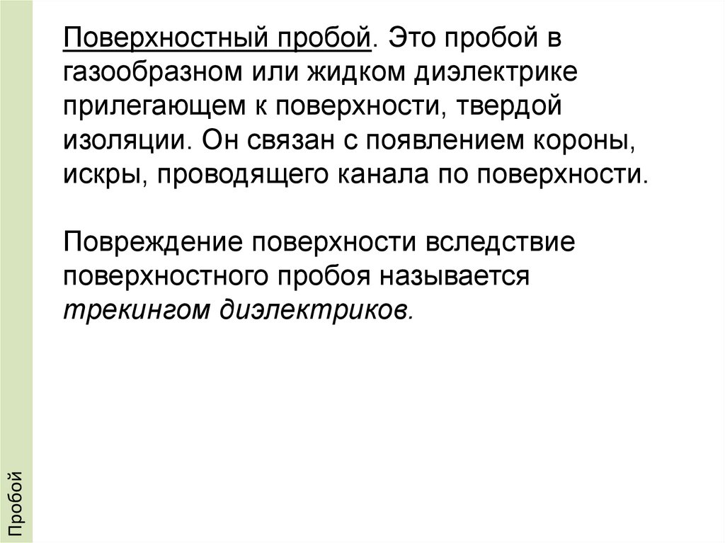 Поверхностный пробой. Это пробой вгазообразном или жидком диэлектрике