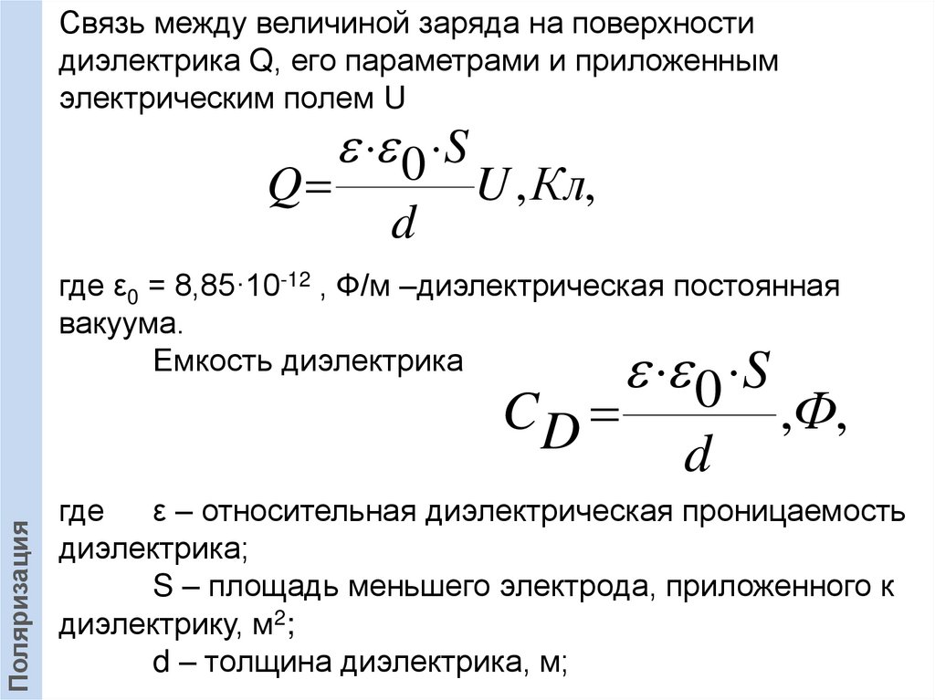 Связь между величиной заряда на поверхностидиэлектрика Q, его параметрами и приложенным