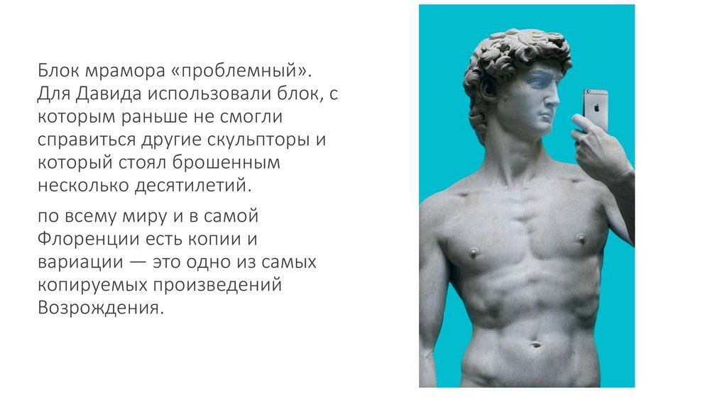 Блок мрамора «проблемный».Для Давида использовали блок, с