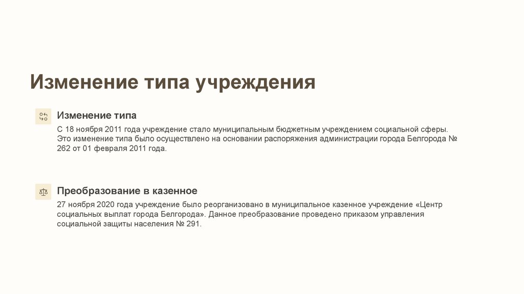 Это изменение типа было осуществлено на основании распоряжения администрации города Белгорода №