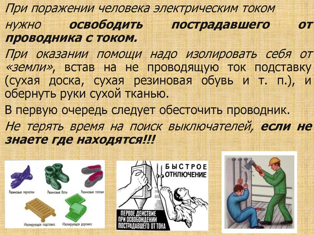 При поражении человека электрическим токомнужно