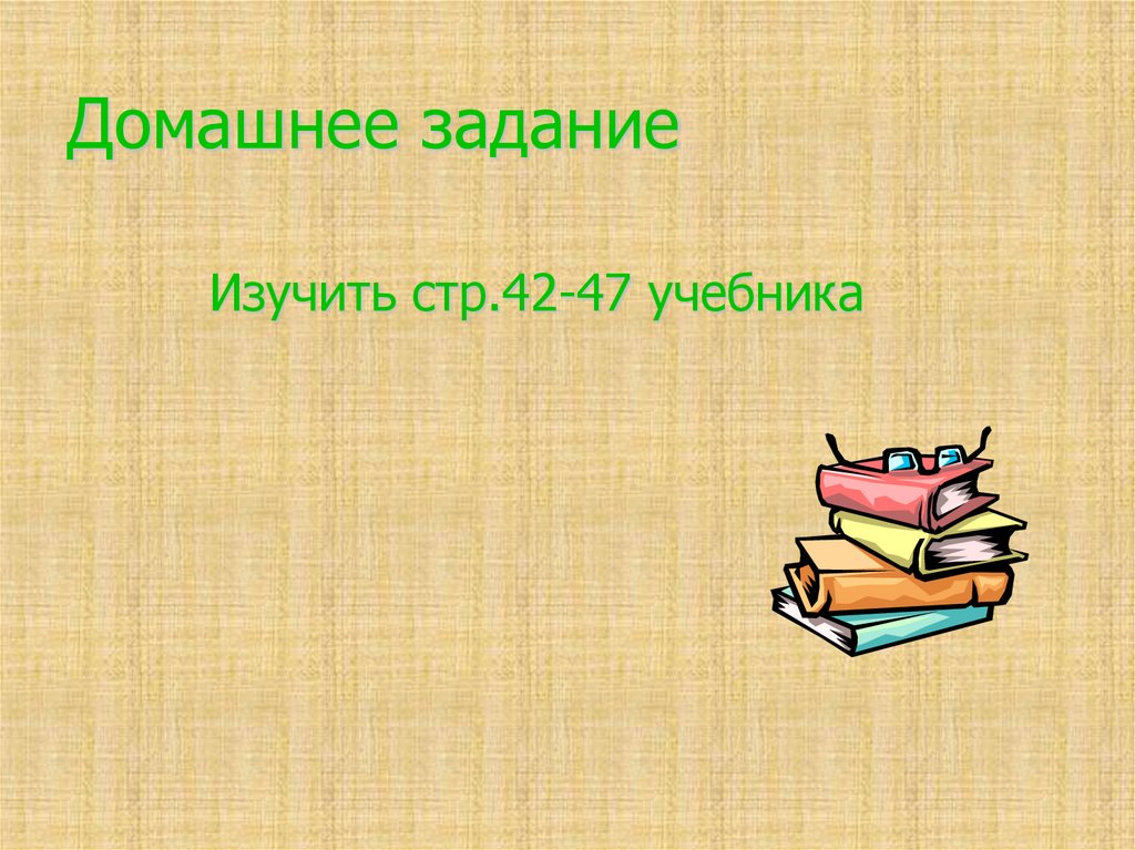 Домашнее заданиеИзучить стр.42-47 учебника