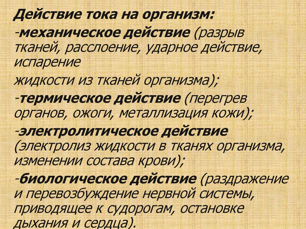 Действие тока на организм:-механическое действие (разрыв