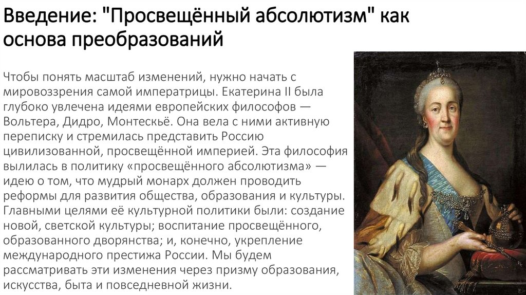 Введение: "Просвещённый абсолютизм" какоснова преобразований
