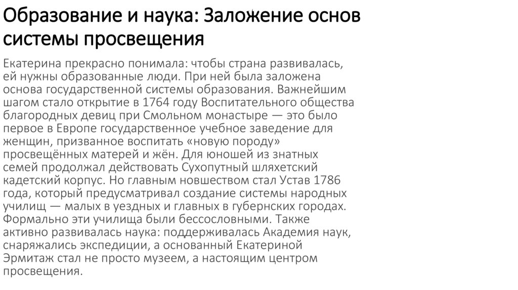 Екатерина прекрасно понимала: чтобы страна развивалась,