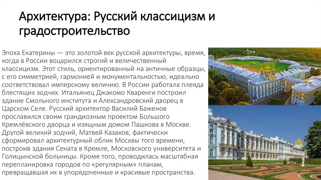 Эпоха Екатерины — это золотой век русской архитектуры, время,