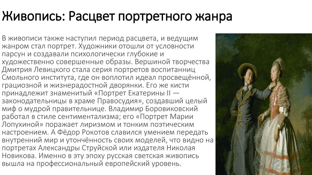 Живопись: Расцвет портретного жанраВ живописи также наступил период расцвета, и ведущим
