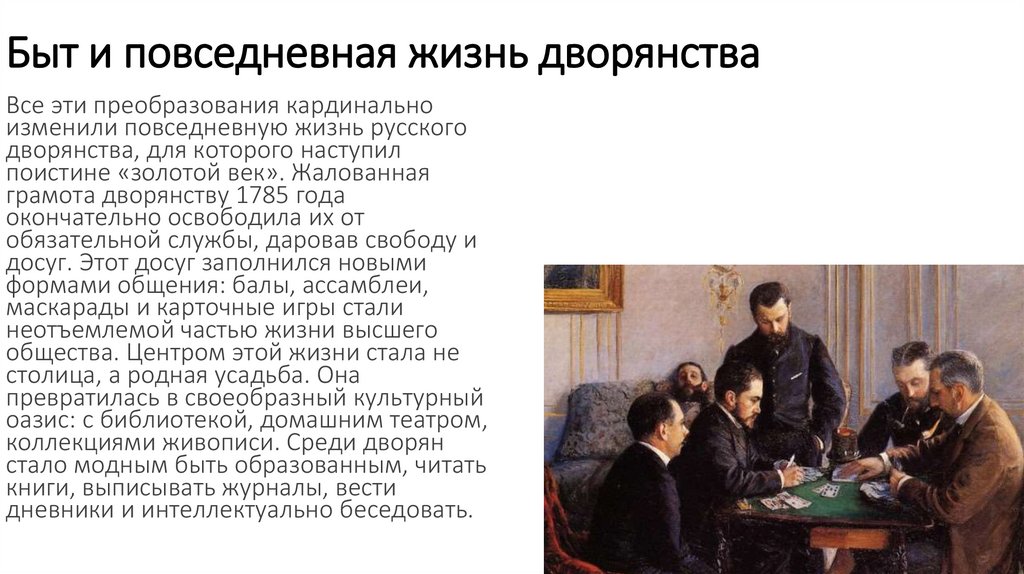 Быт и повседневная жизнь дворянстваВсе эти преобразования кардинально