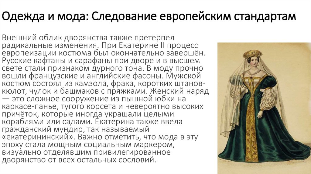 Одежда и мода: Следование европейским стандартамВнешний облик дворянства также претерпел