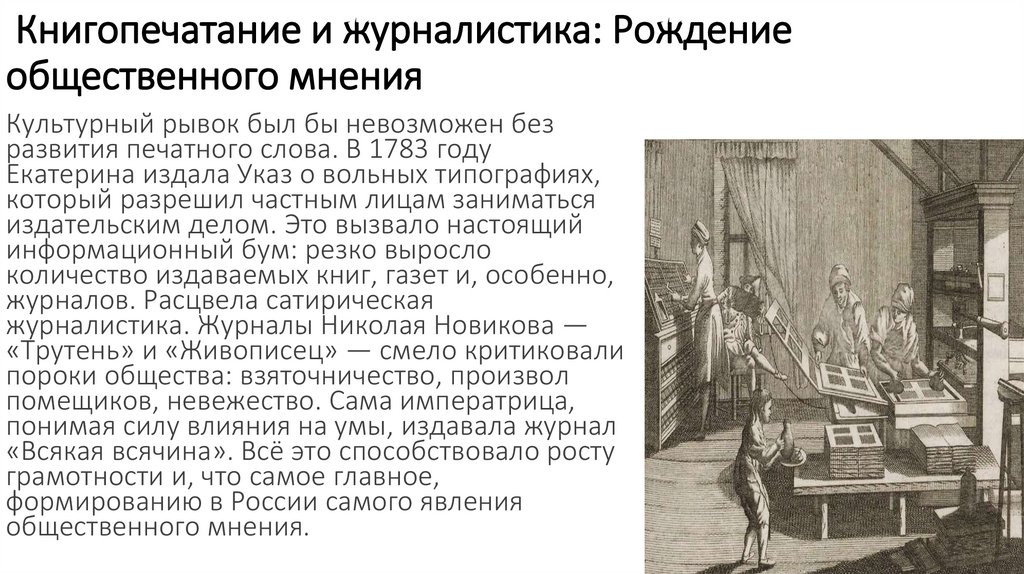 Книгопечатание и журналистика: Рождениеобщественного мнения
