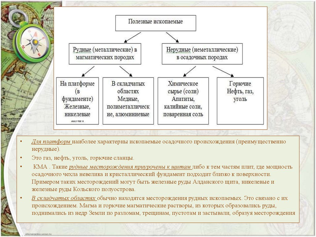 Для платформ наиболее характерны ископаемые осадочного происхождения (преимущественно