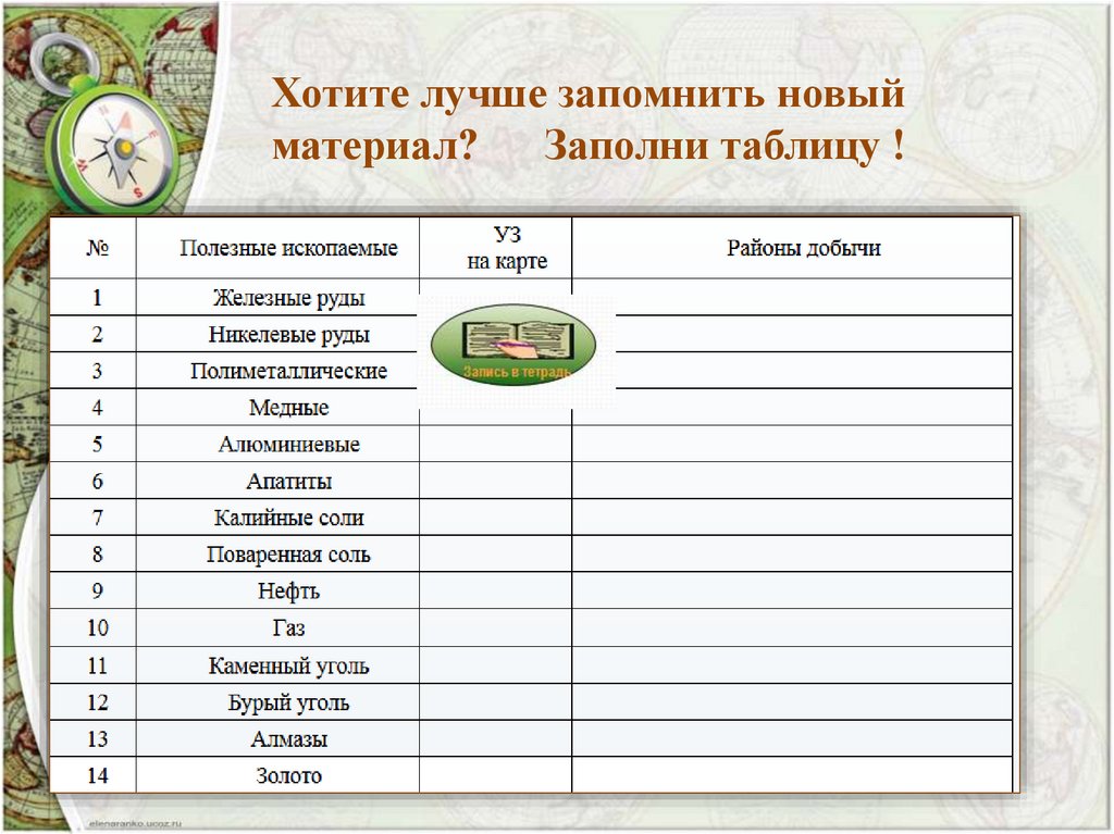 12. Основные месторождениями полезных ископаемых