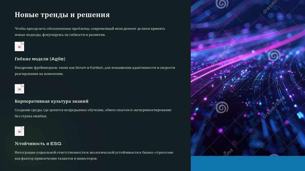 Новые тренды и решенияЧтобы преодолеть обозначенные проблемы, современный менеджмент должен принять
