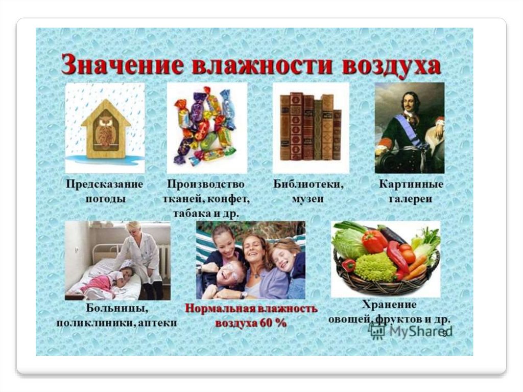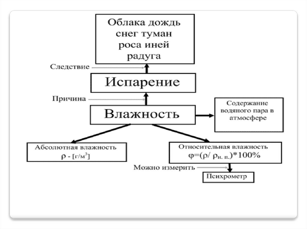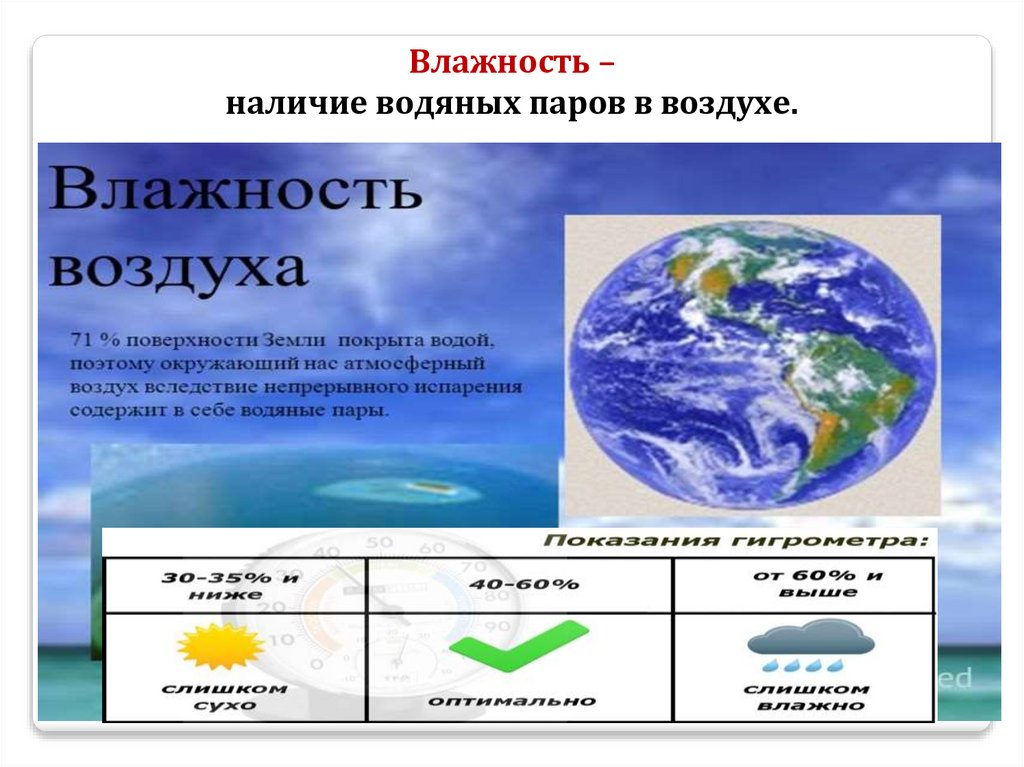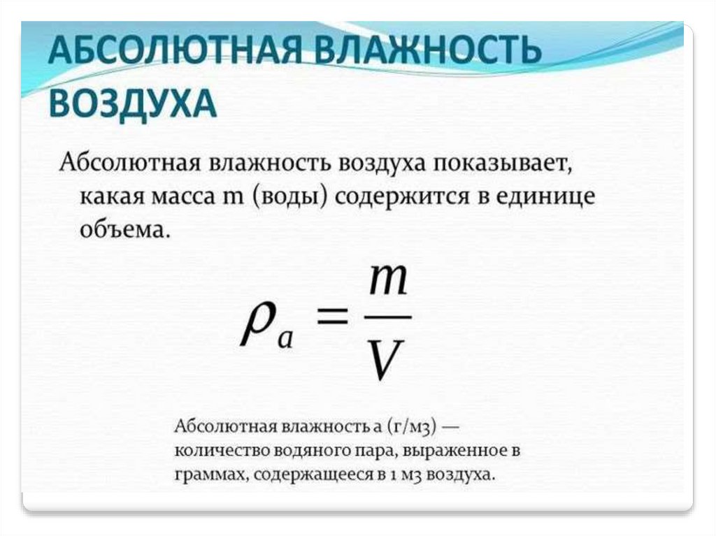 Влажность –наличие водяных паров в воздухе.