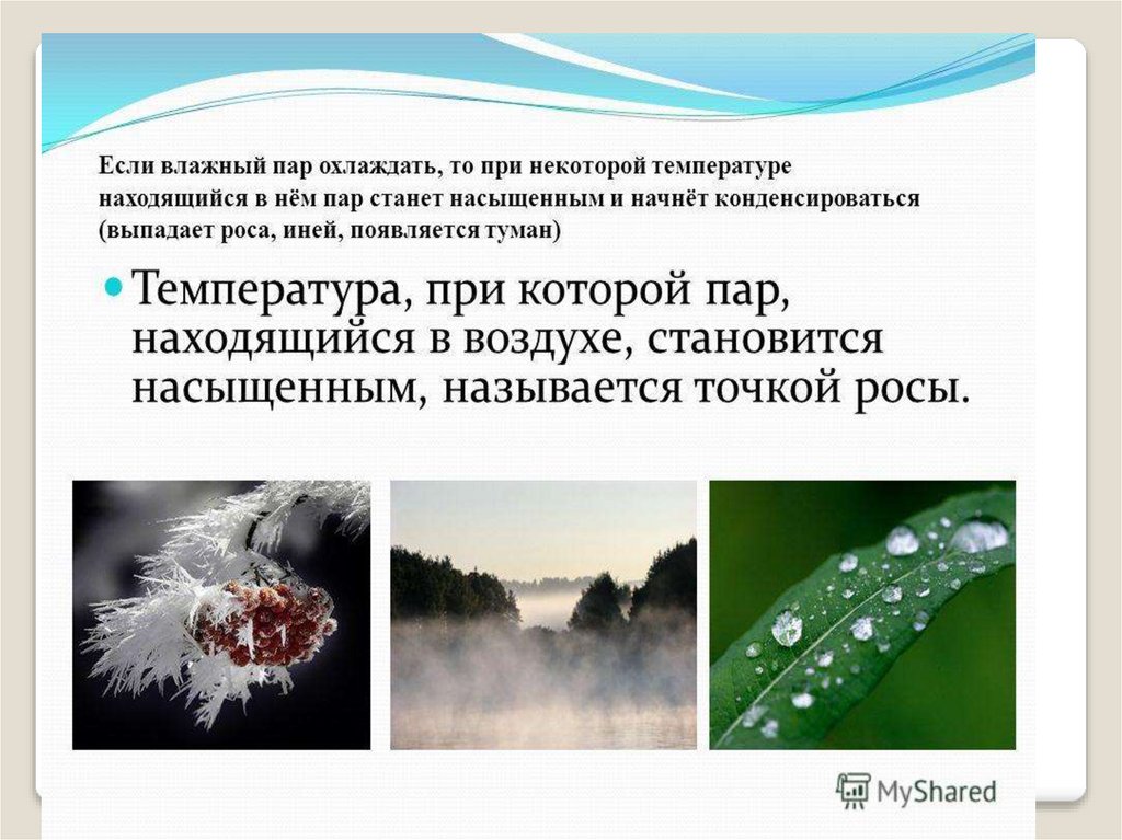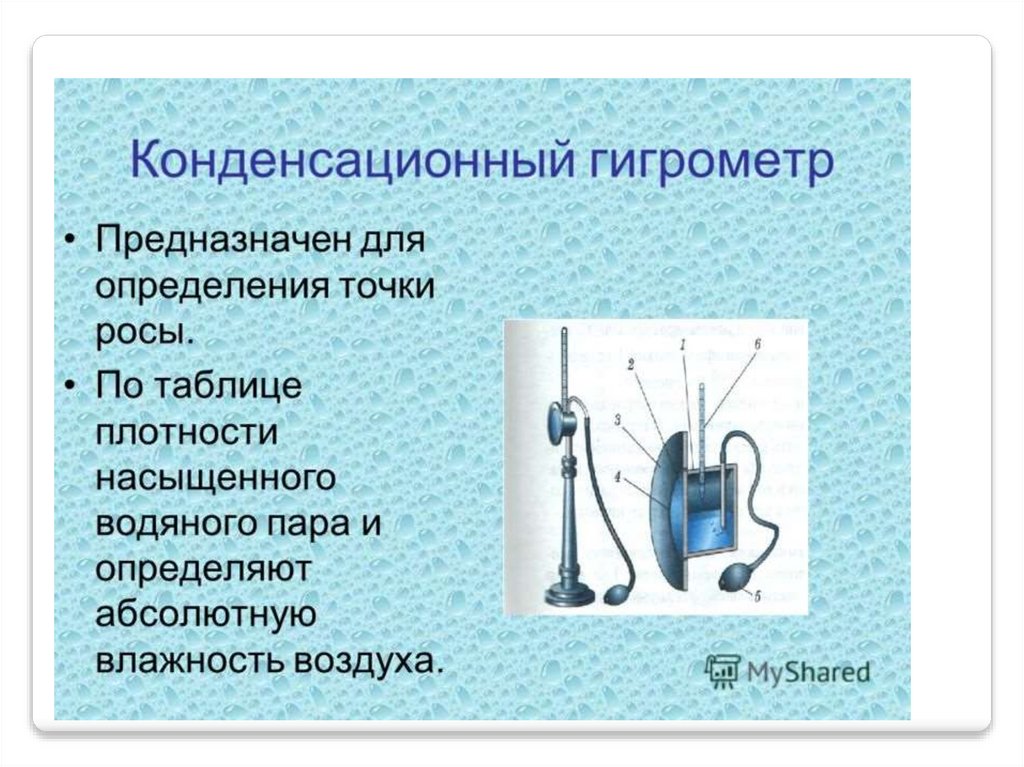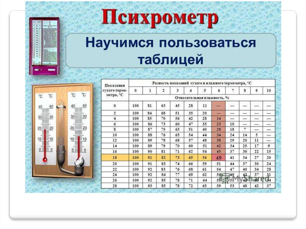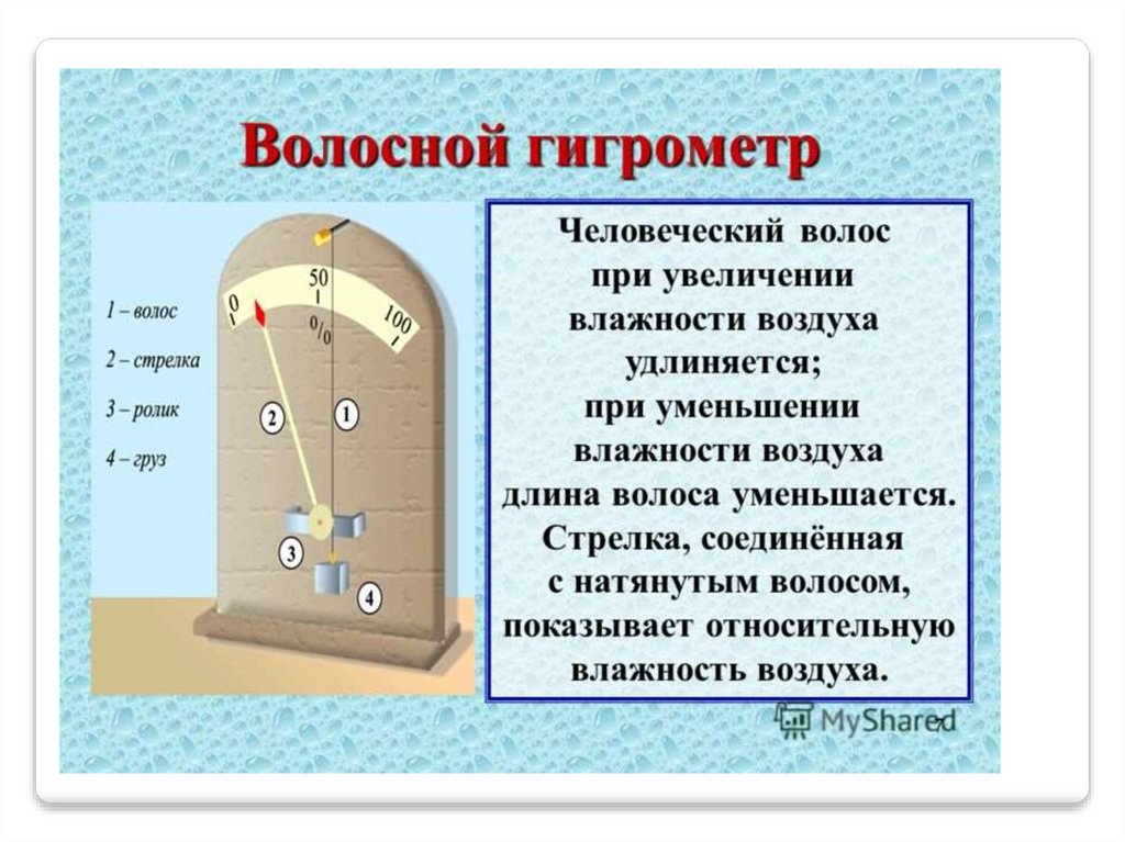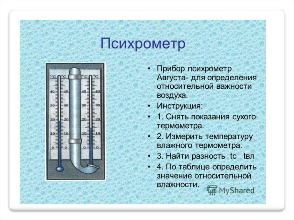 Влажность –наличие водяных паров в воздухе.