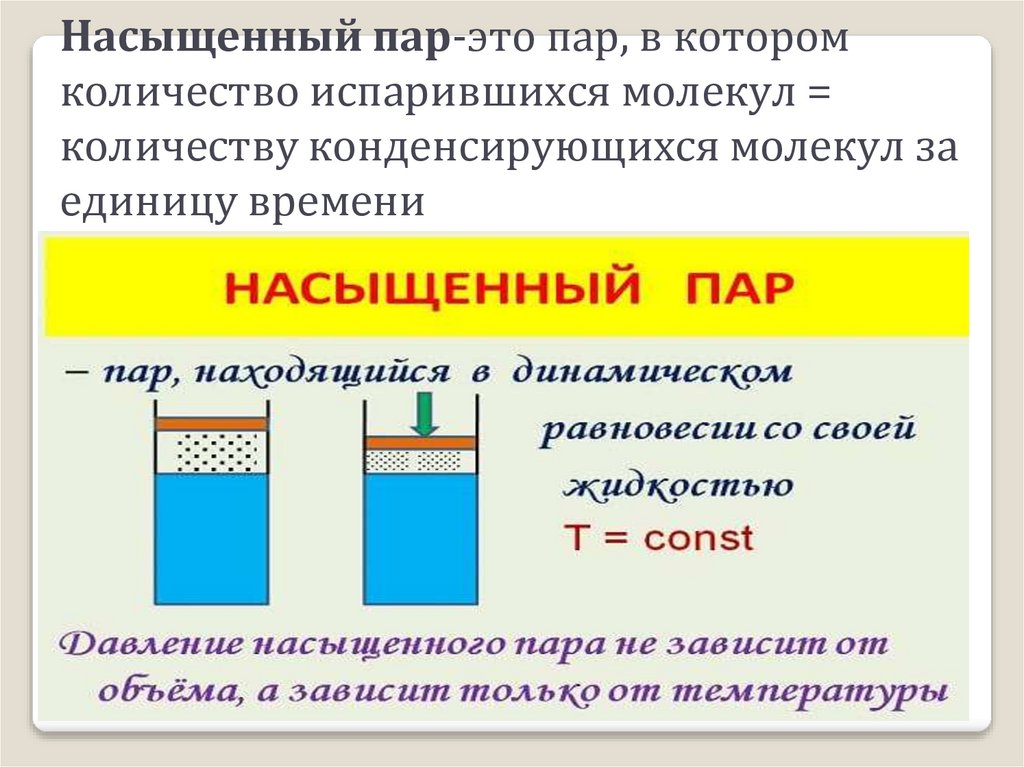 Насыщенный пар-это пар, в которомколичество испарившихся молекул =