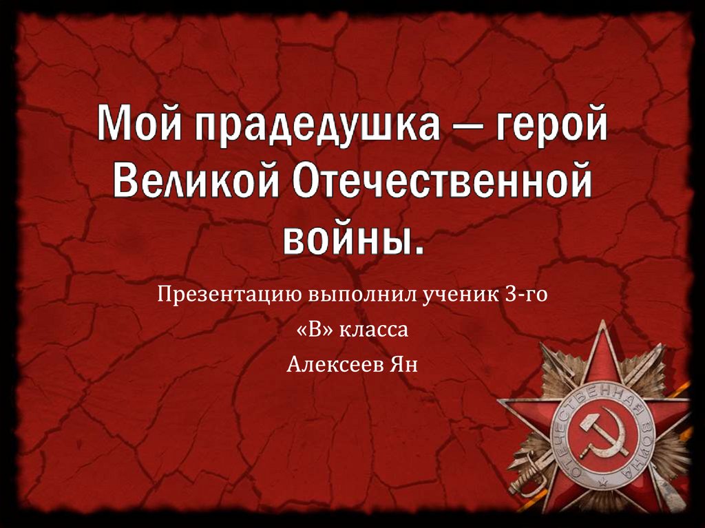1. Мой прадедушка — герой Великой Отечественной войны.