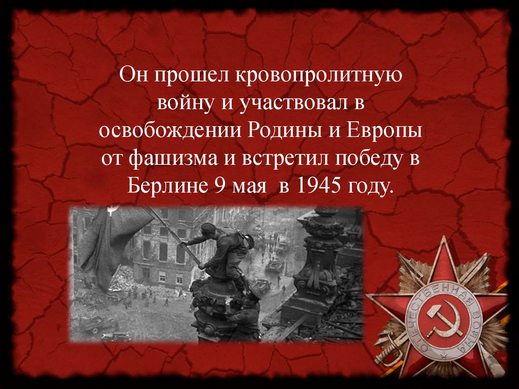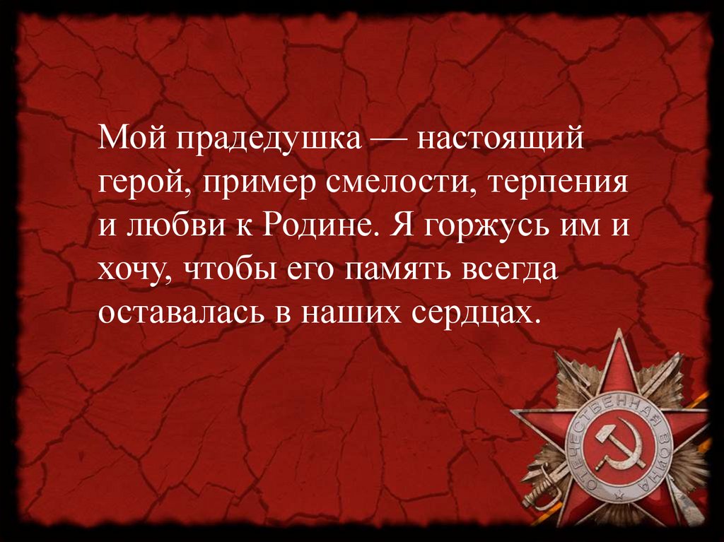 Мой прадедушка — настоящийгерой, пример смелости, терпения