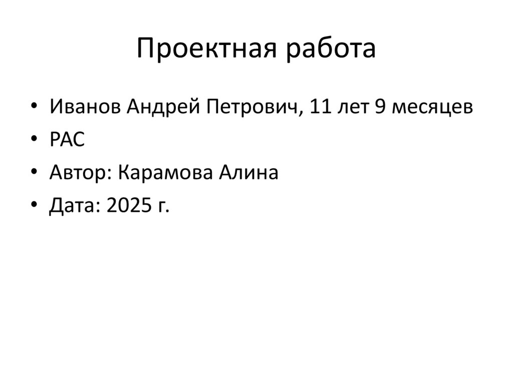 Проектная работа• Иванов Андрей Петрович, 11 лет 9 месяцев