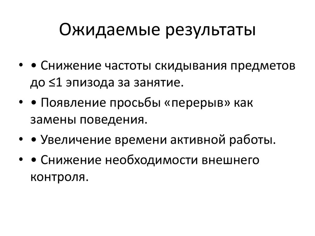 Ожидаемые результаты• • Снижение частоты скидывания предметов