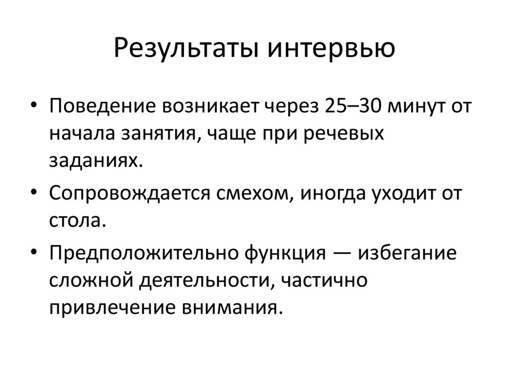 Результаты интервью• Поведение возникает через 25–30 минут от