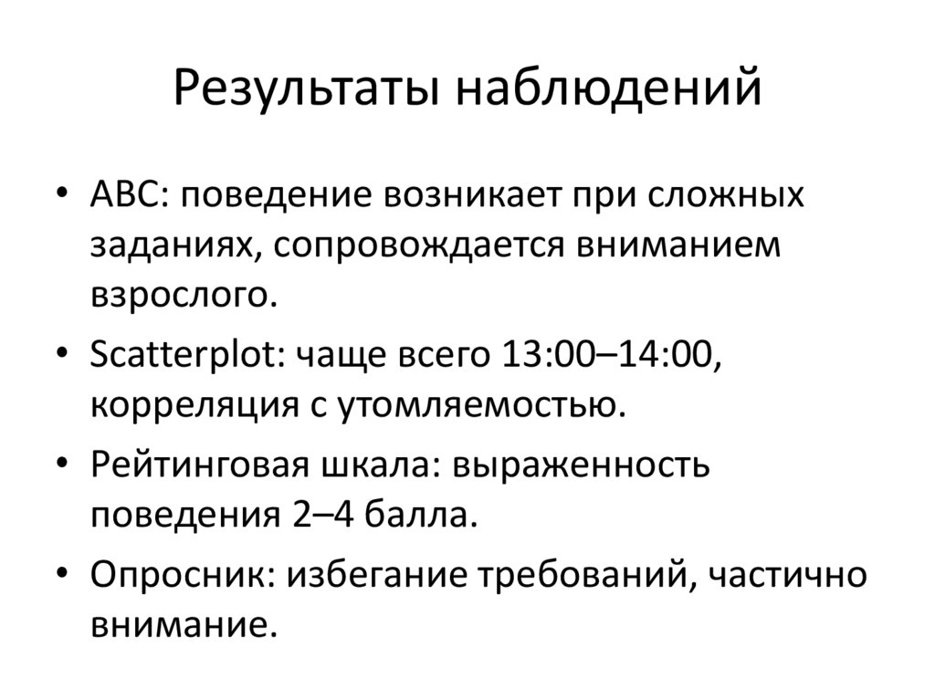 Результаты наблюдений• ABC: поведение возникает при сложных
