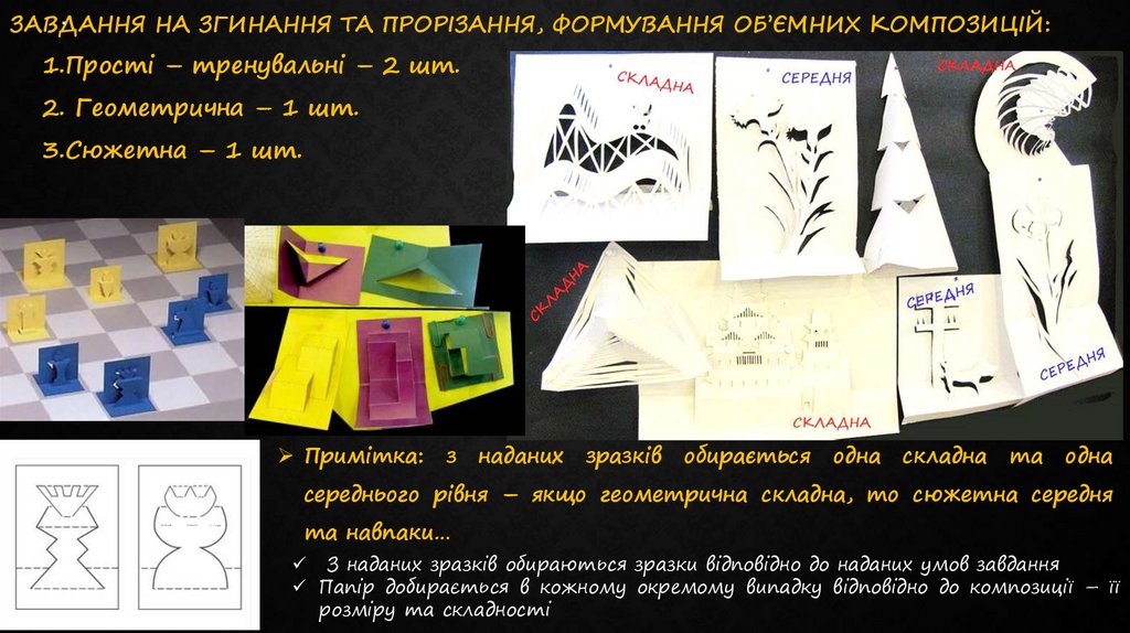 НА ЗГИНАННЯ ТА ПРОРІЗАННЯ, ФОРМУВАННЯ ОБ’ЄМНИХ КОМПОЗИЦІЙ: