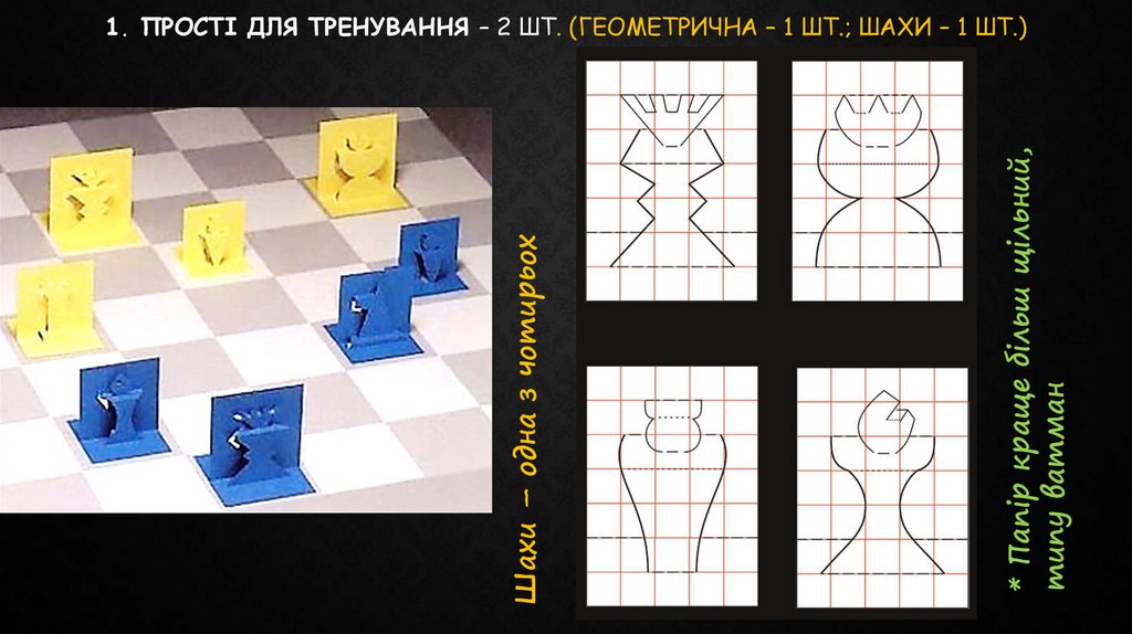 1. ПРОСТІ ДЛЯ ТРЕНУВАННЯ – 2 ШТ. (ГЕОМЕТРИЧНА – 1 ШТ.; ШАХИ – 1 ШТ.)