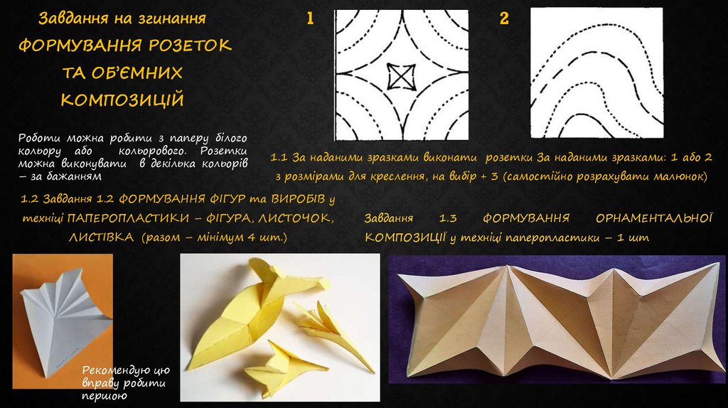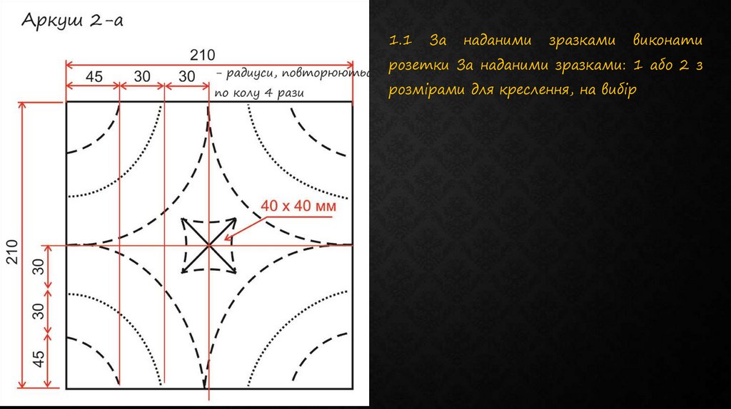 1.1 За наданими зразками виконати розетки За наданими зразками: 1 або 2