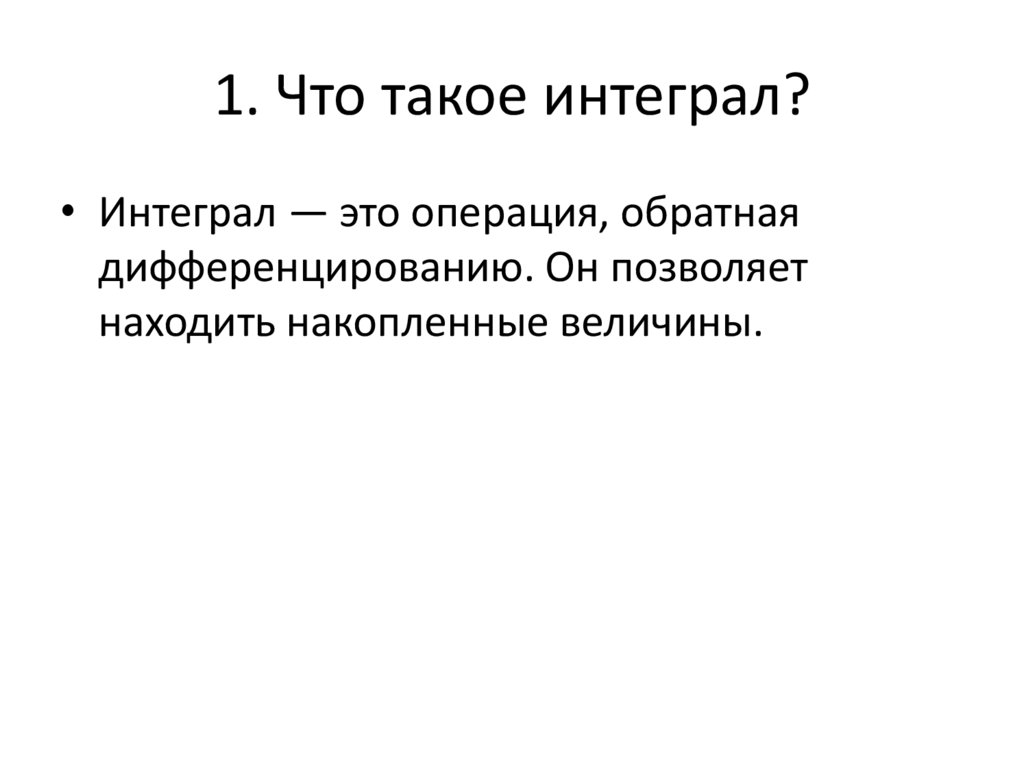 1. Что такое интеграл?• Интеграл — это операция, обратная