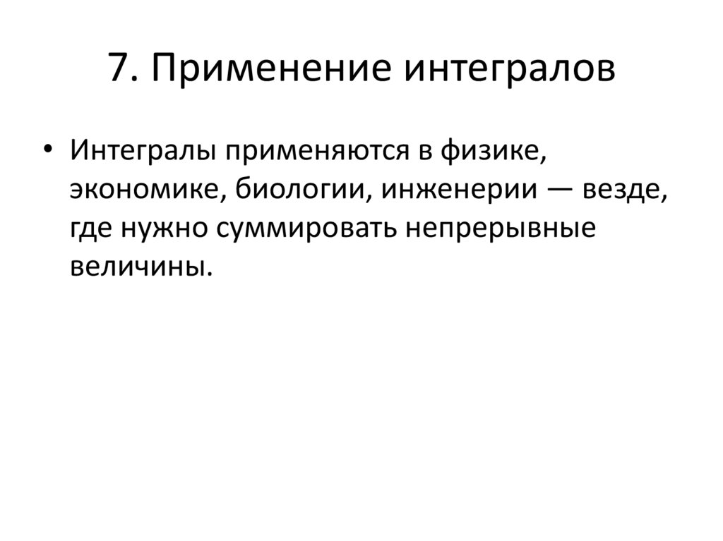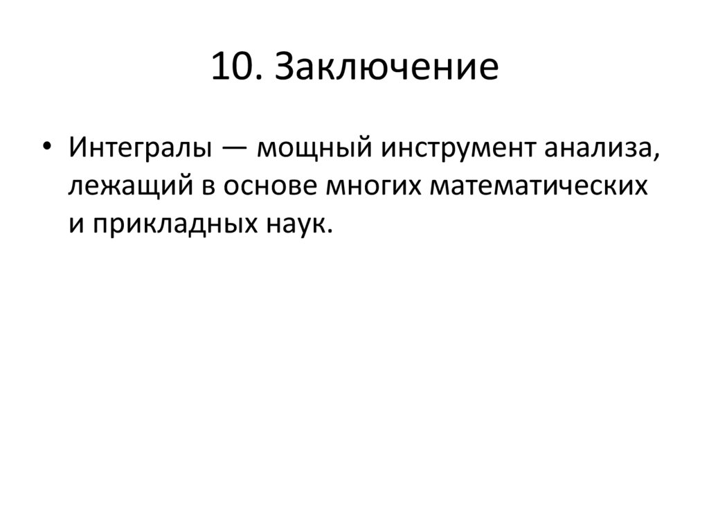 10. Заключение• Интегралы — мощный инструмент анализа,